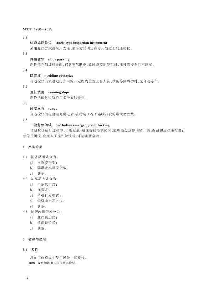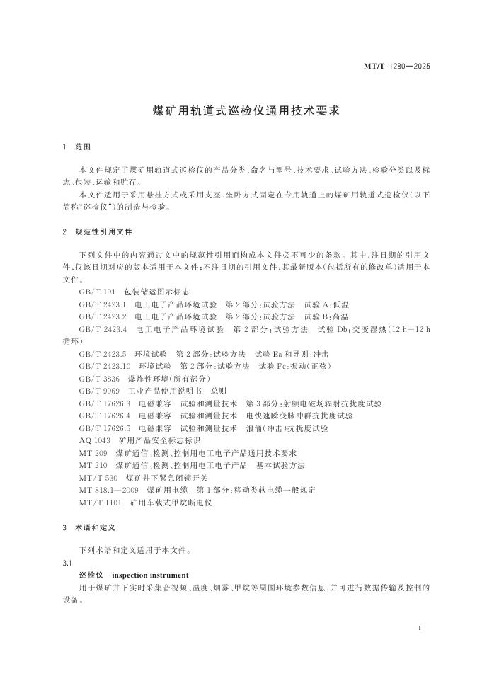 MT/T 1280-2025 煤矿用轨道式巡检仪通用技术要求