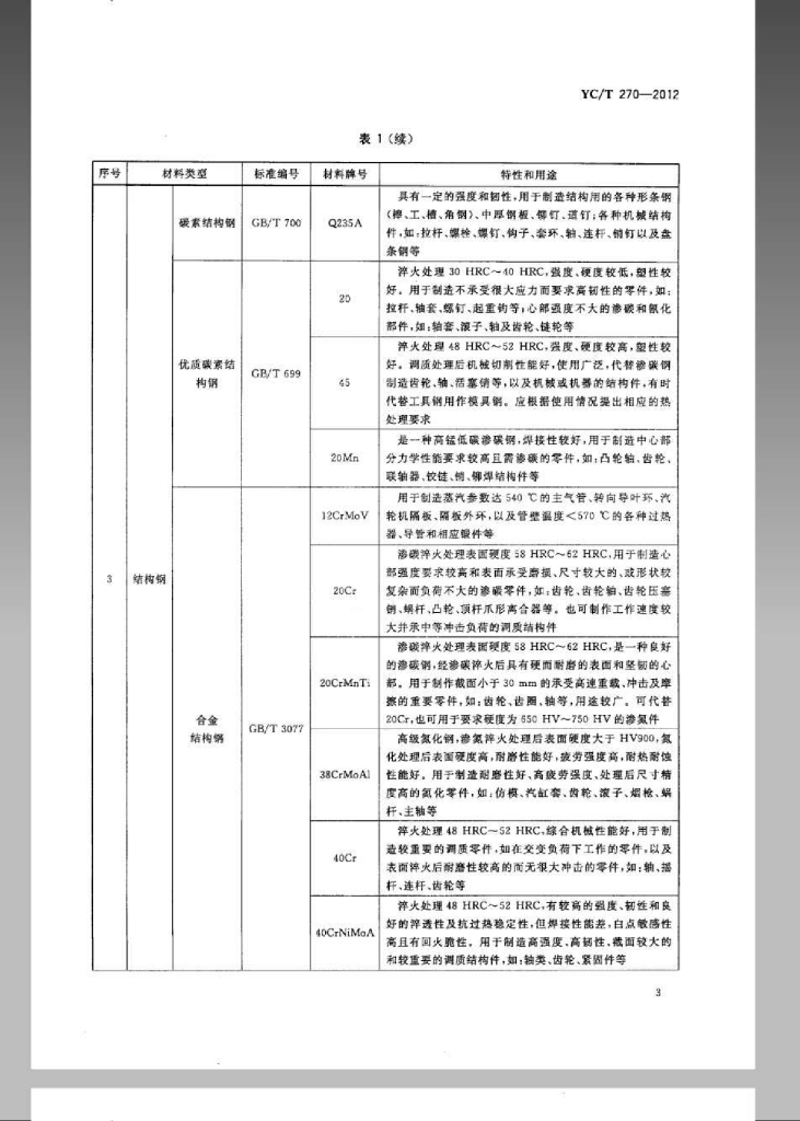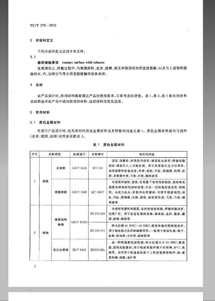 YC/T 270-2012 烟草机械常用材料