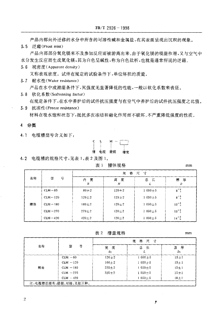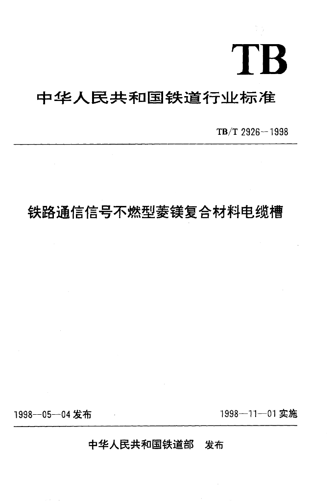 TB/T 2926-1998 铁路通信信号不燃型菱镁复合材料电缆槽
