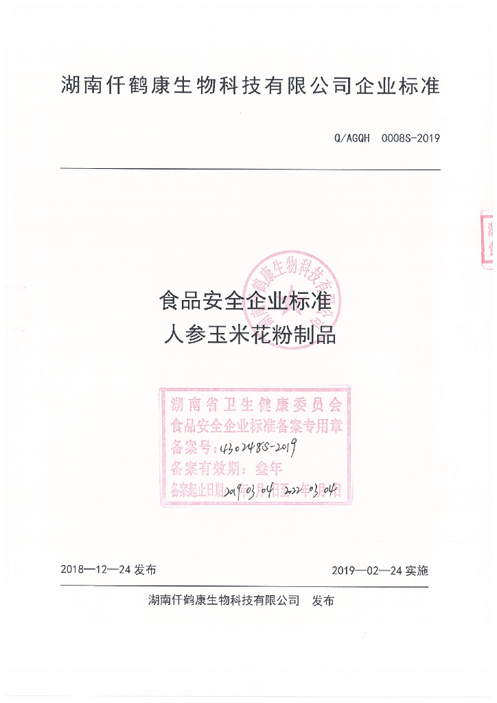 Q/AGQH 0008S-2019 人参玉米花粉制品