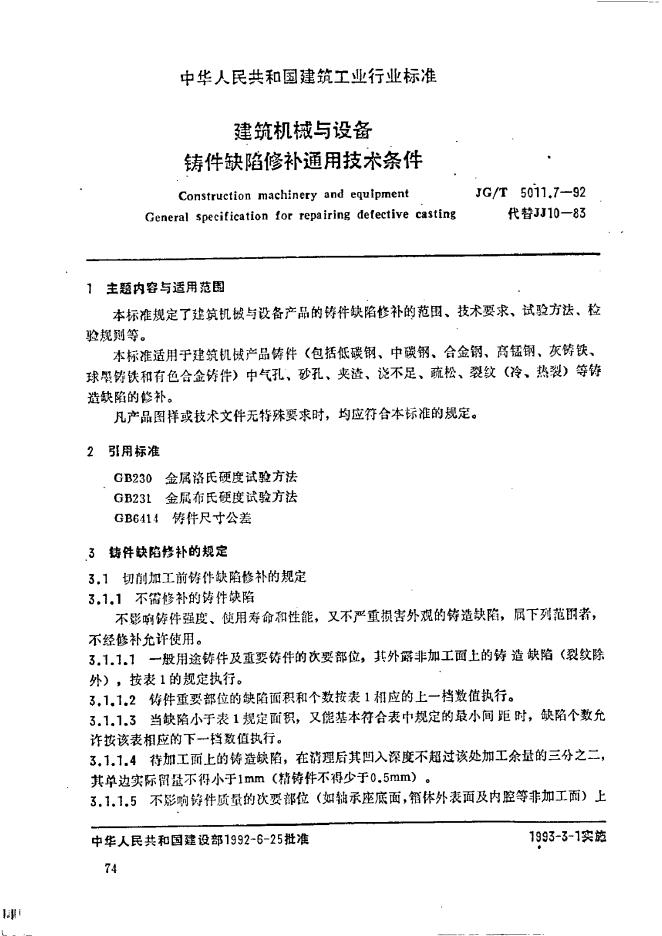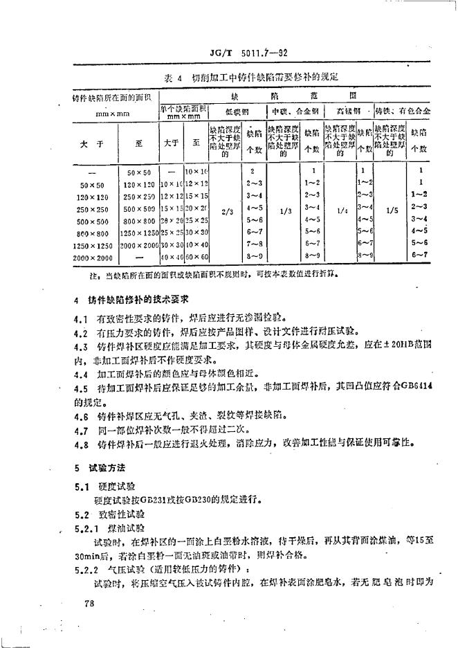 JG/T 5011.7-1992 建筑机械与设备铸件缺陷修补通用技术条件