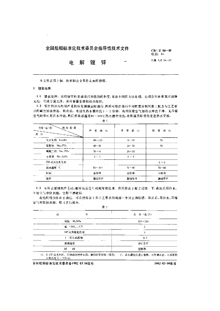 CB/Z 54-1981 电解镀锌