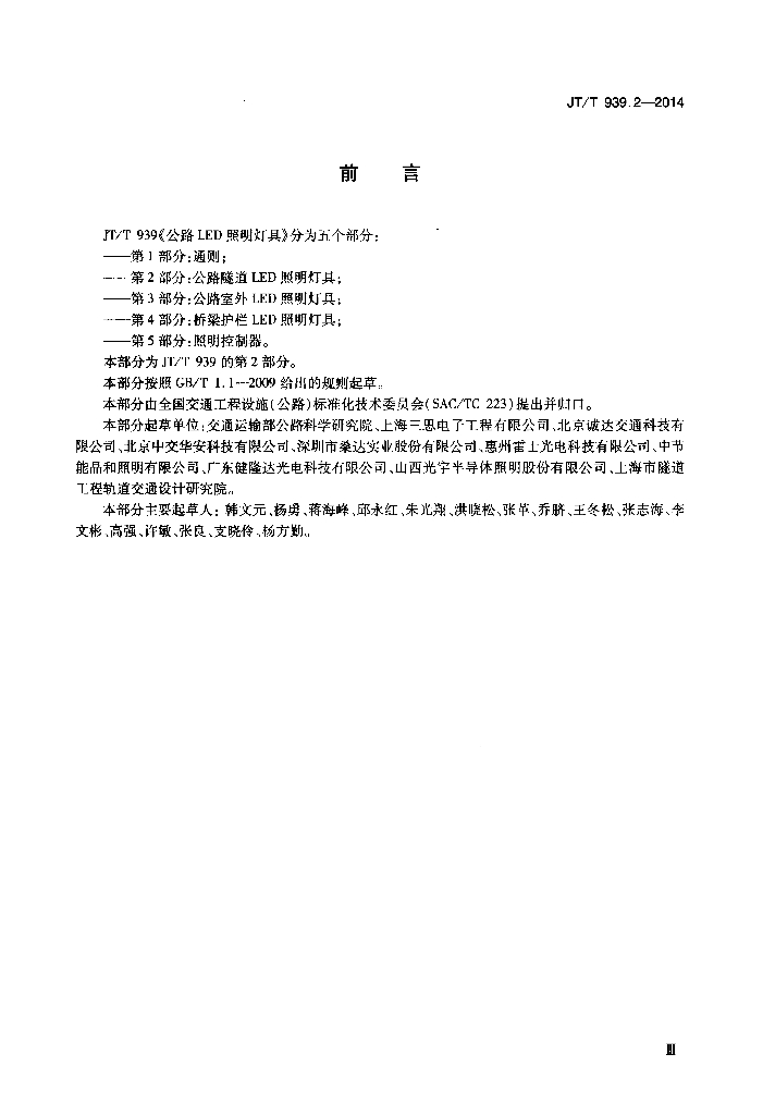 交通运输部公路科学研究院、上海三思电子工程有限公司、北京诚达交通科技有限公司、北京中交华安科技有限公司、深圳市桑达实业股份有限公司、惠州雷士光电科技有限公司、中节能晶和照明有限公司、广东健隆达光电科技有限公司、山西光宇半导体照明股份有限公司、上海市隧道工程轨道交通设计研究院