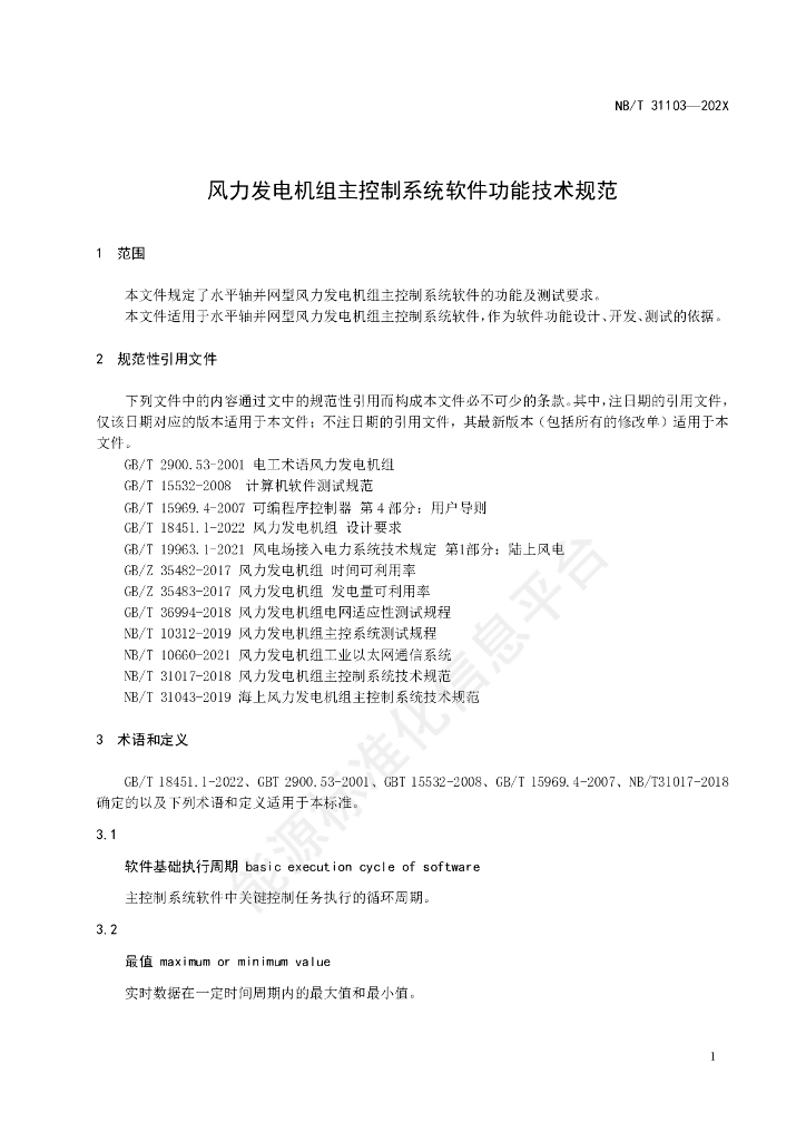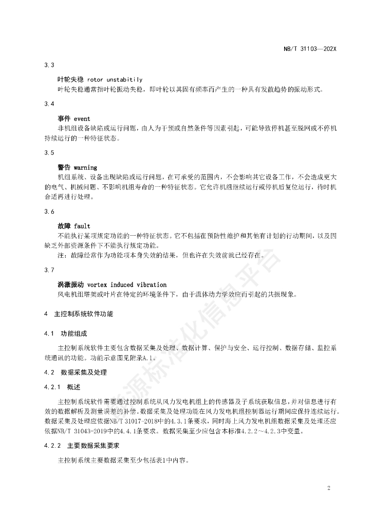 NB/T 31103-2023 风力发电机组主控制系统软件功能技术规范