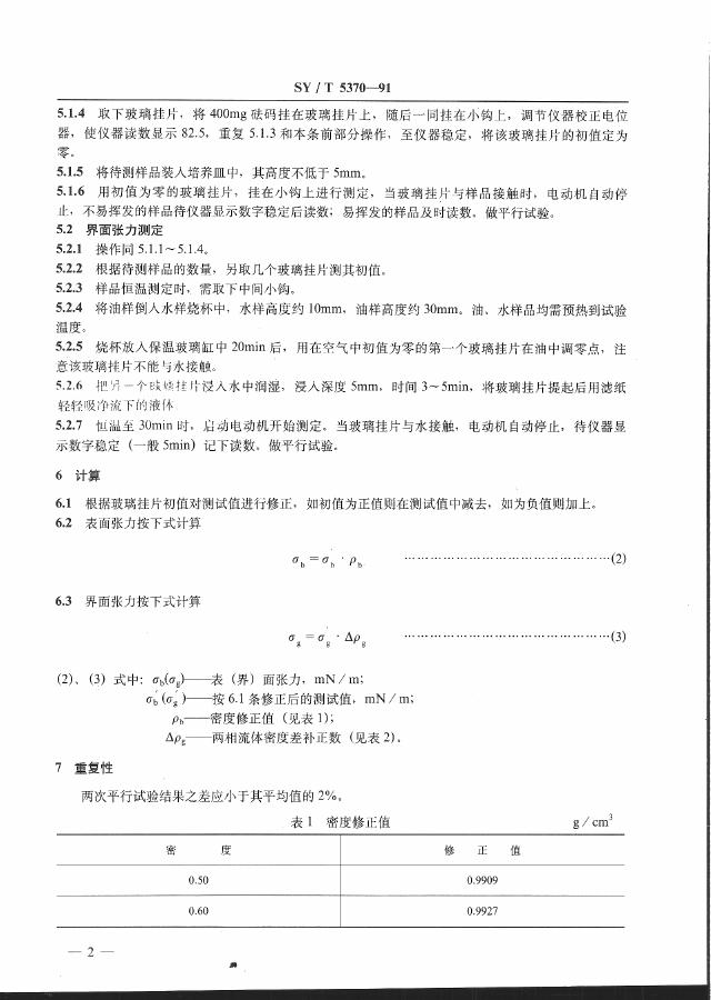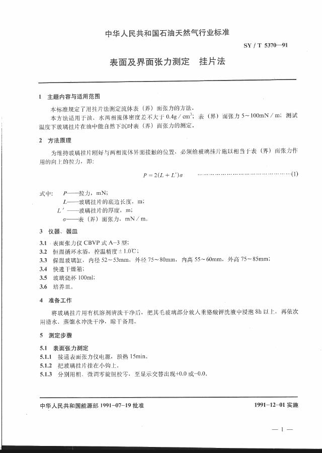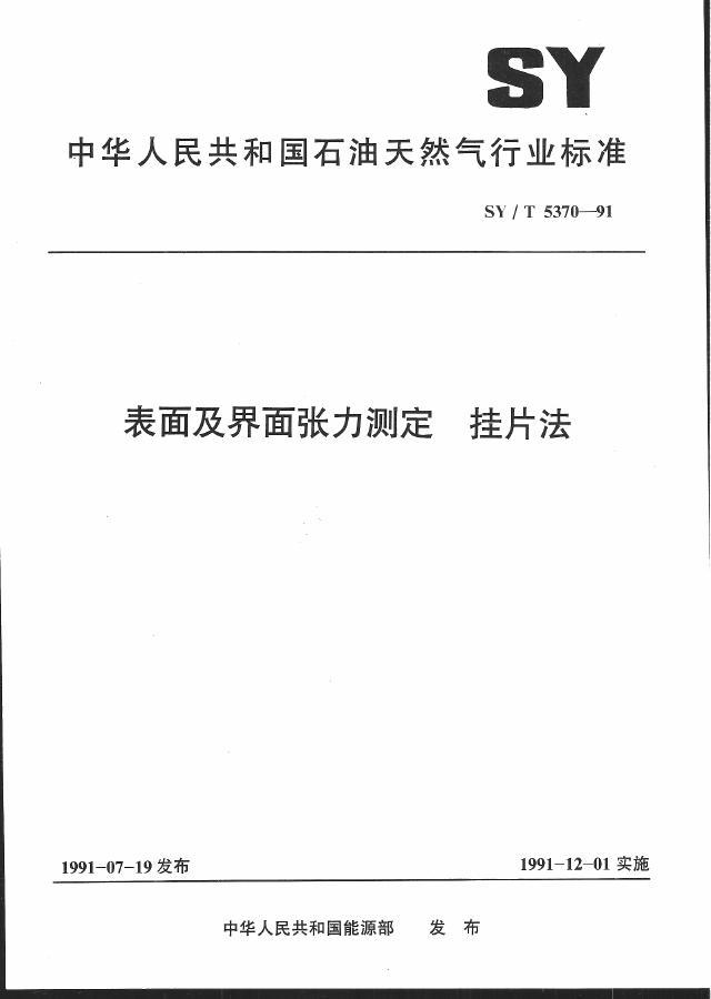 SY/T 5370-1991 表面及界面张力测定 挂片法
