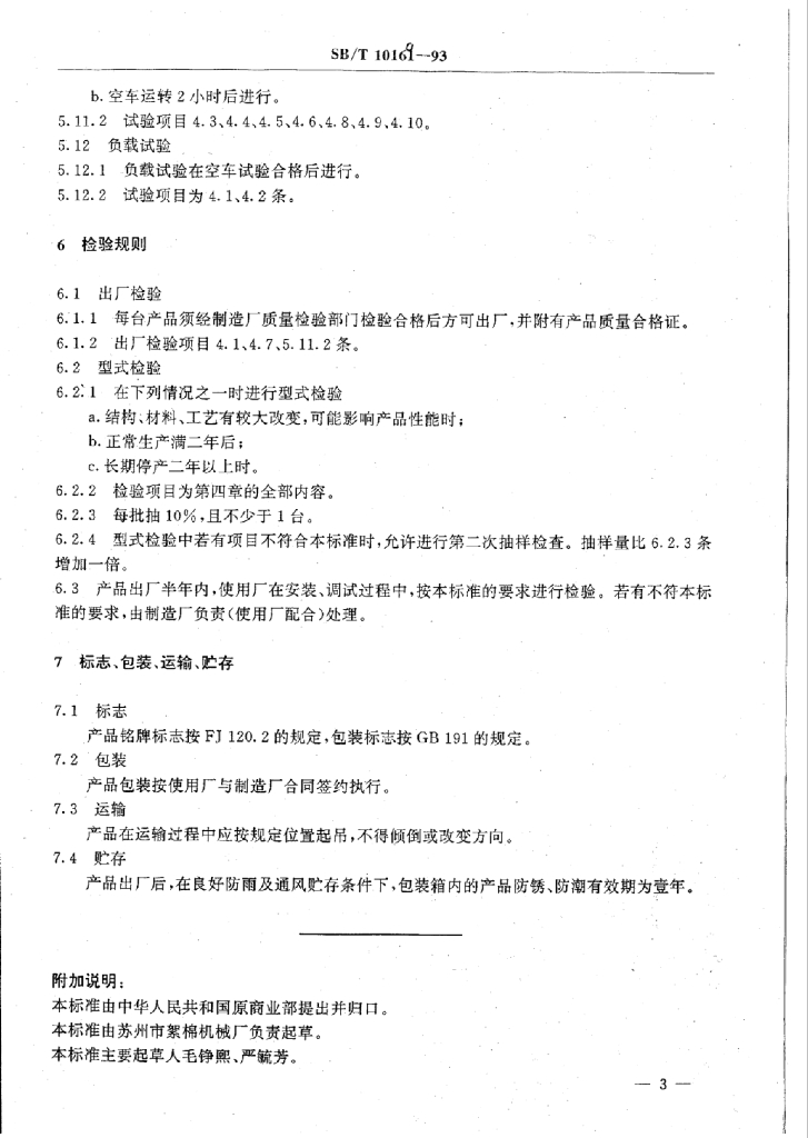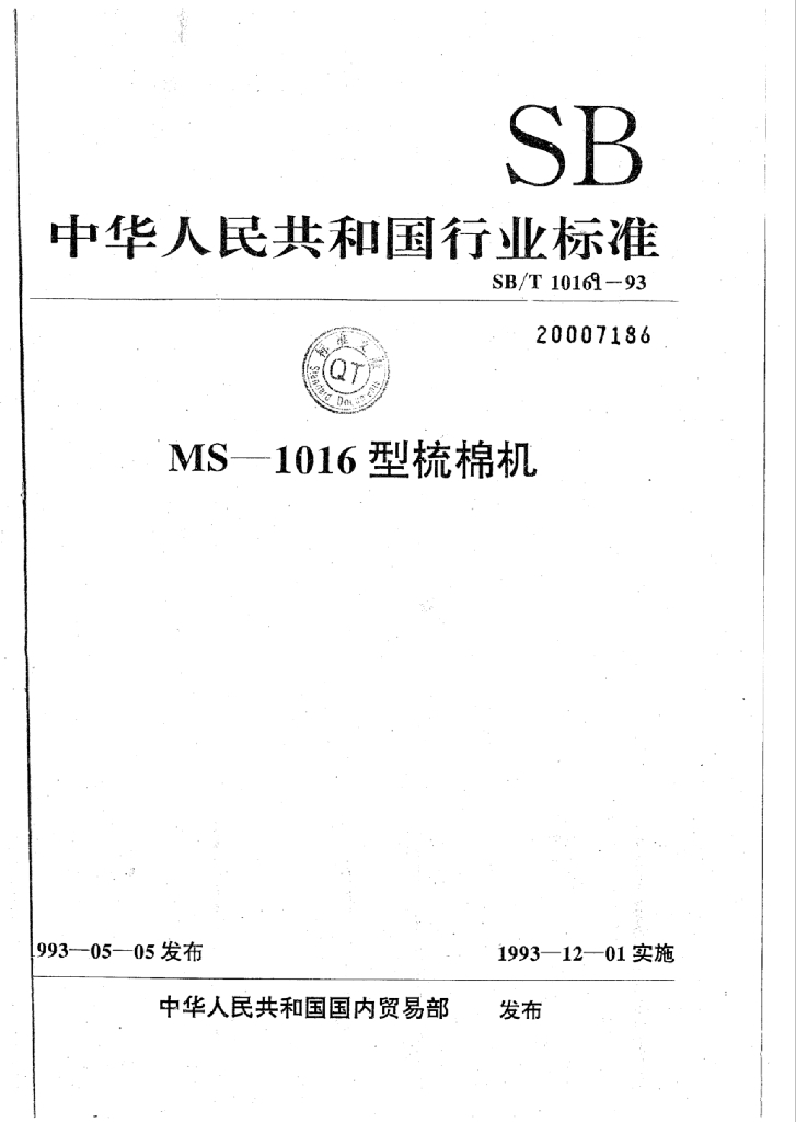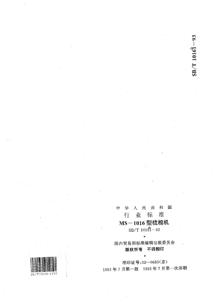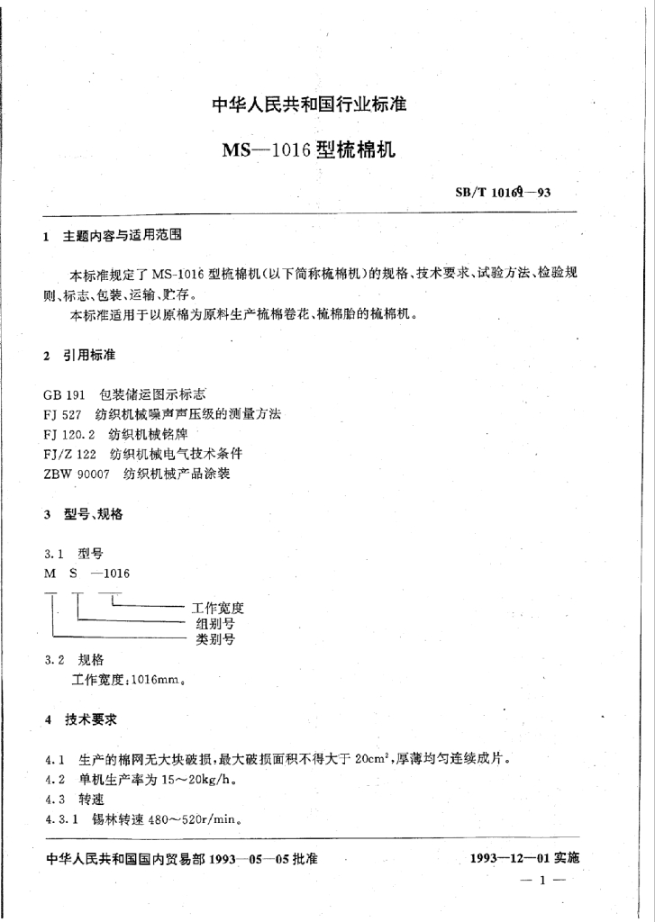 SB/T 10169-1993 MS-1016型梳棉机