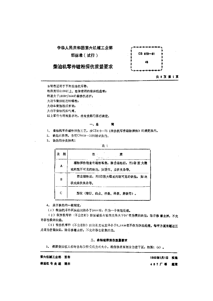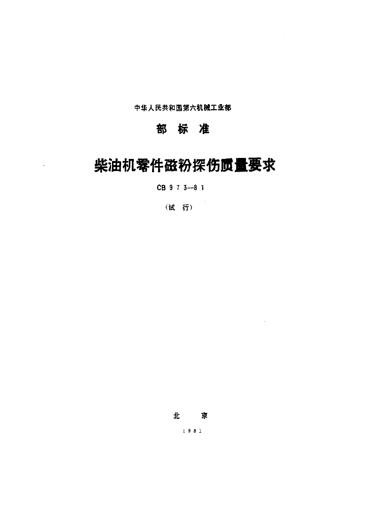 CB 973-1981 柴油机零件磁粉探伤质量要求(试行)