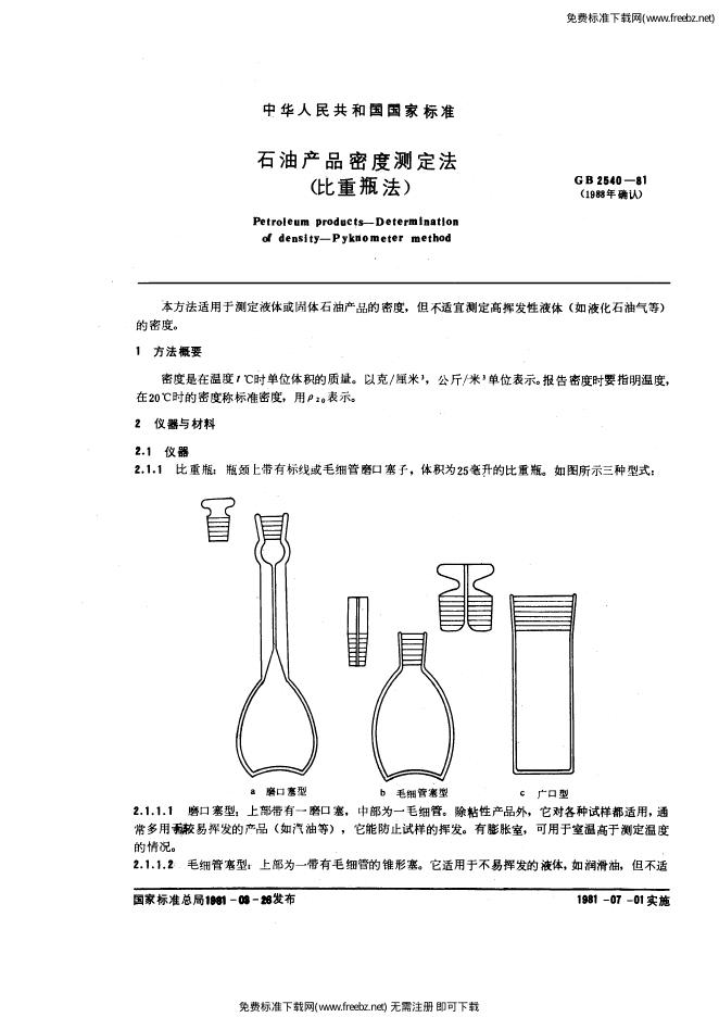 GB/T 2540-1981 石油产品密度测定法 比重瓶法
