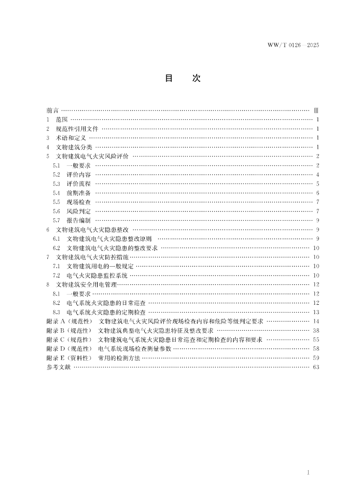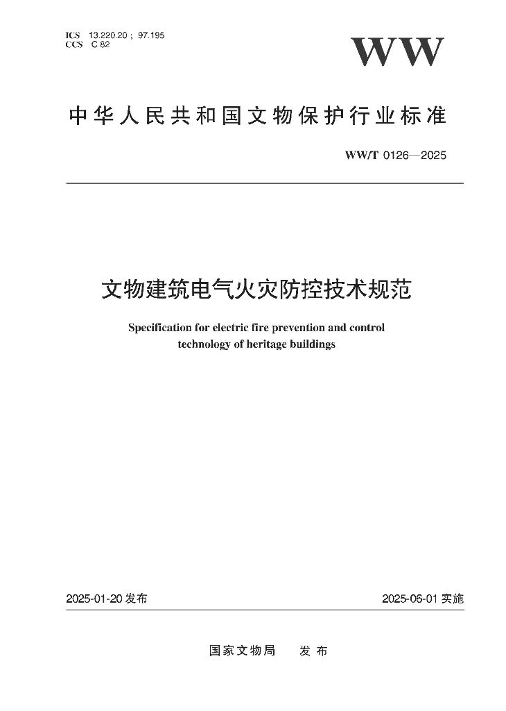 WW/T 0126-2025 文物建筑电气火灾防控技术规范