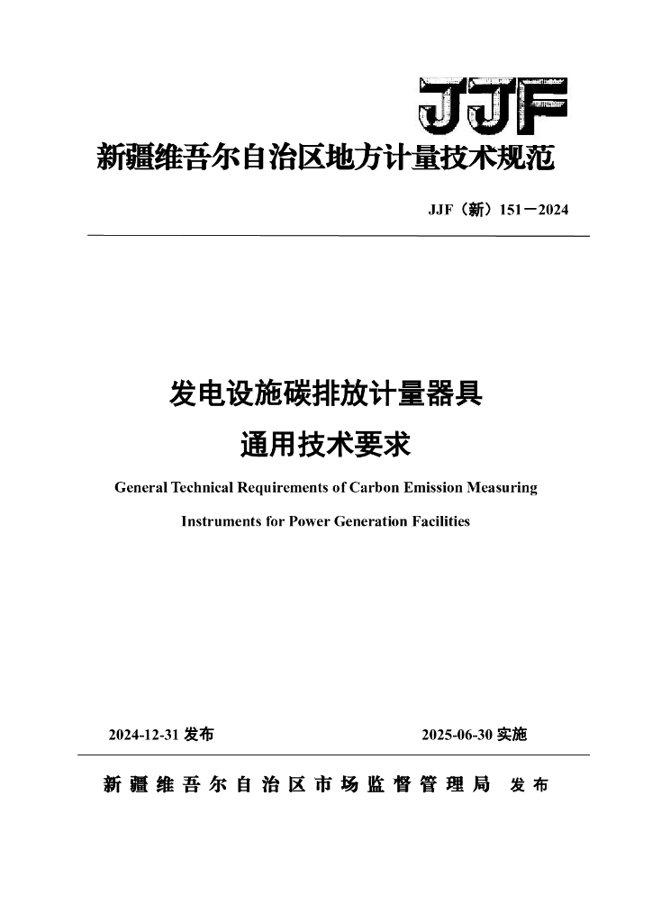 JJF(新)151-2024 发电设施碳排放计量器具通用技术要求