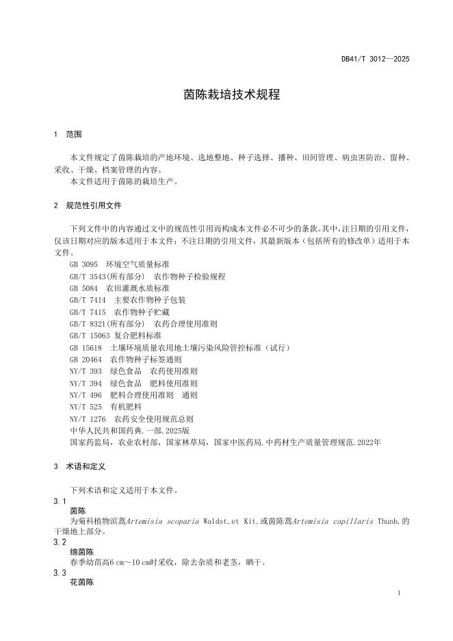 DB41/T 3012-2025 茵陈栽培技术规程