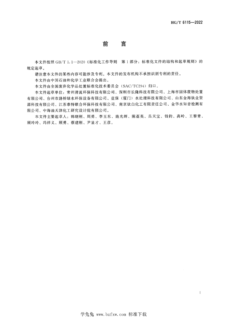 常州清流环保科技有限公司、深圳市长隆科技有限公司、上海市固体废物处置有限公司、台州市路桥绿水环保设备有限公司、蓝保(厦门)水处理科技有限公司、山东金海钛业资源科技有限公司、江苏泰特联合环保科技有限公司、南京钛白化工有限责任公司、金华水知音检测有限公司、中海油天津化工研究设计院有限公司