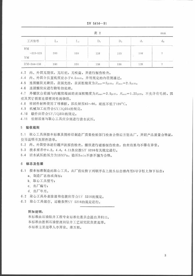 SY 5414-1991 密闭取心工具