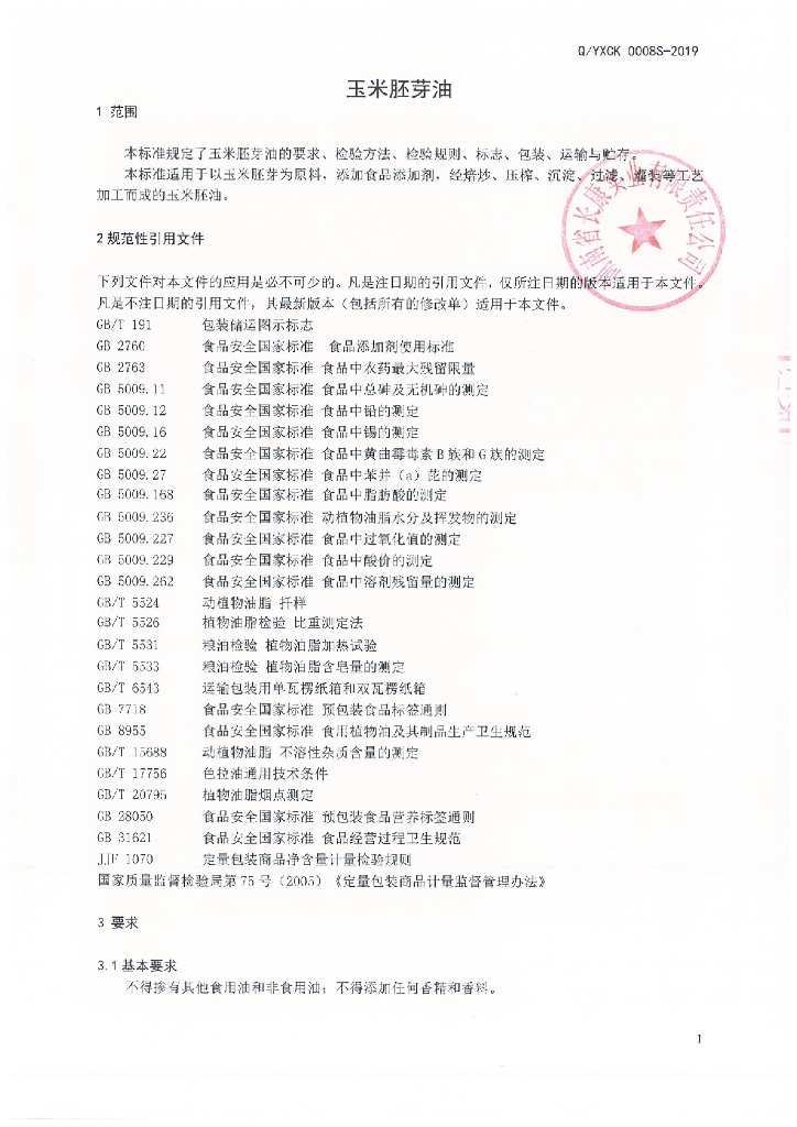 Q/YXCK 0008S-2019 玉米胚芽油