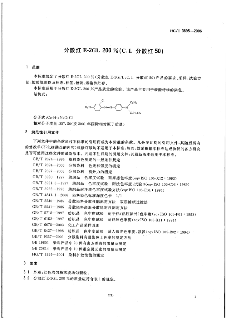HG/T 3895-2006 分散红E-2GL 200%(C.I.分散红50)