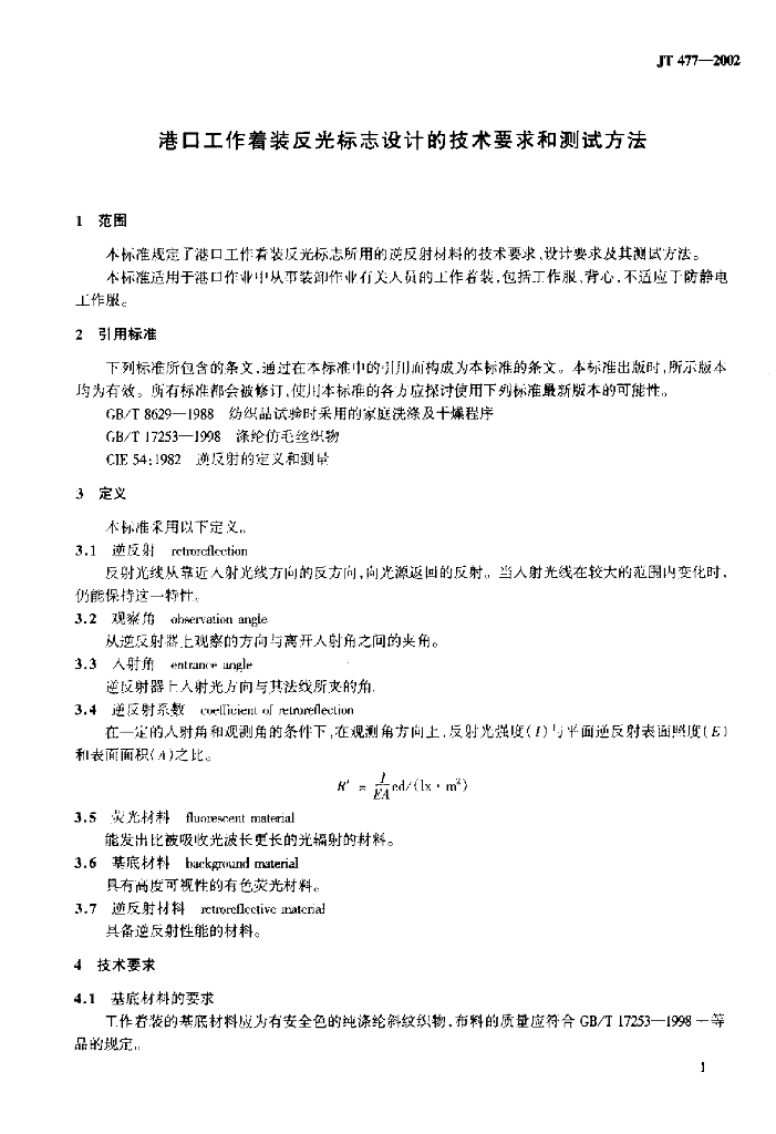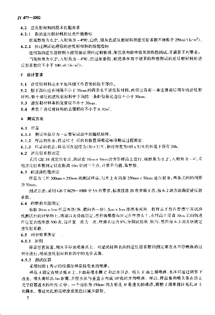 JT 477-2002 港口工作着装反光标志设计的技术要求和测试方法
