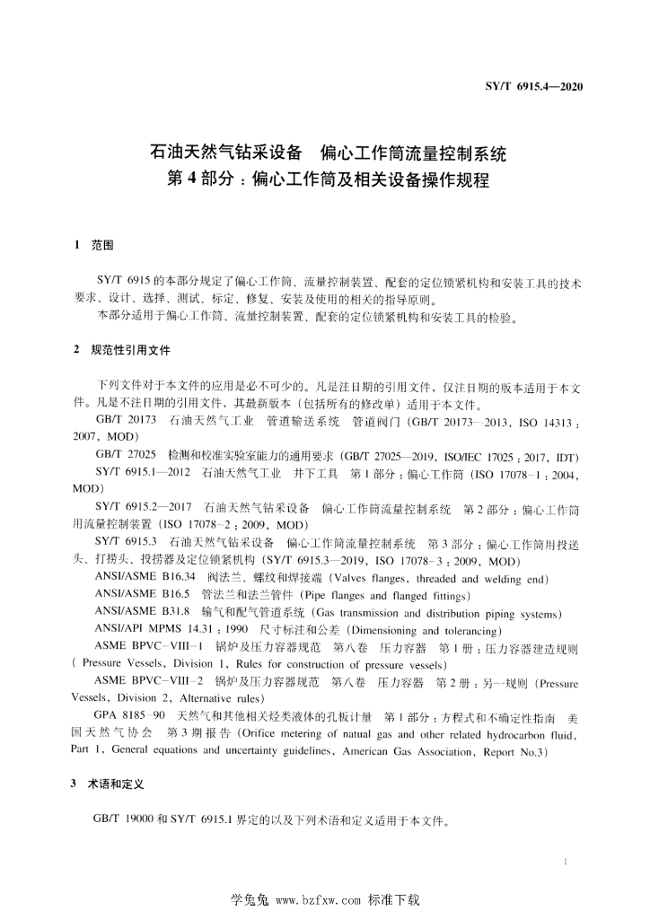 SY/T 6915.4-2020 石油天然气钻采设备 偏心工作筒流量控制系统 第4部分:偏心工作筒及相关设备操作规程