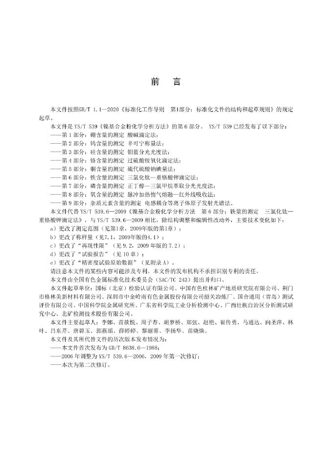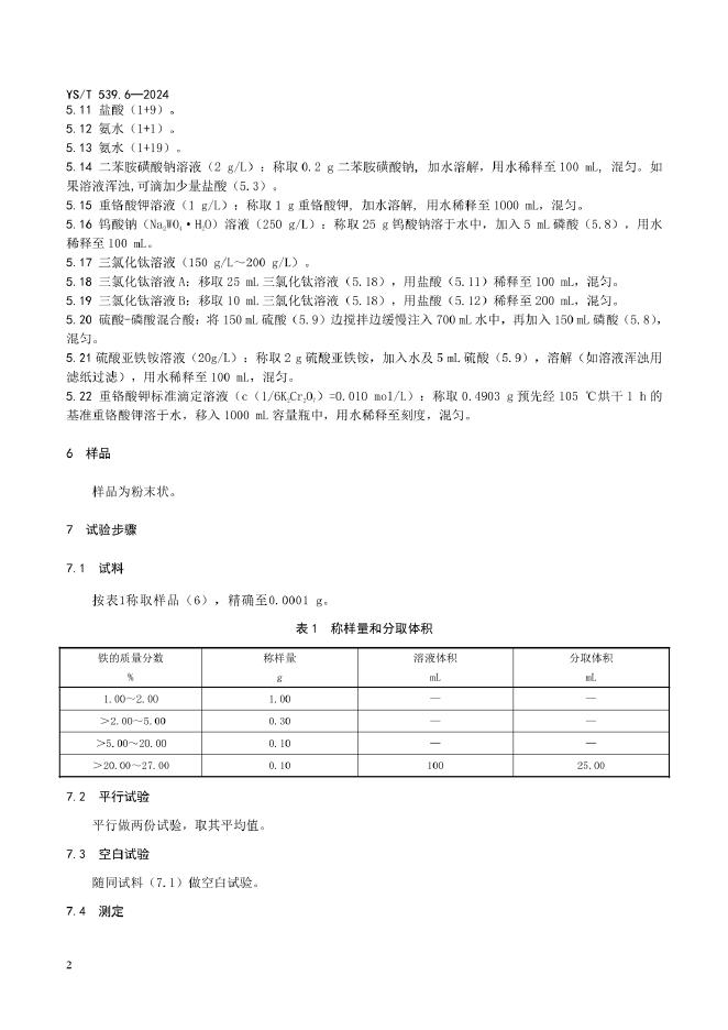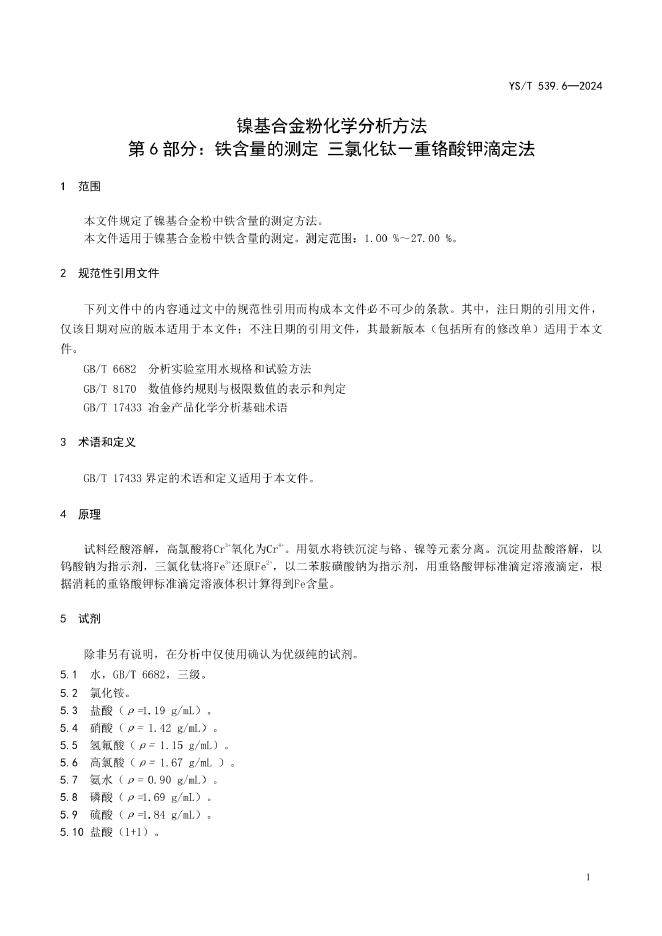YS/T 539.6-2024 镍基合金粉化学分析方法 第6部分:铁含量的测定 三氯化钛-重铬酸钾滴定法
