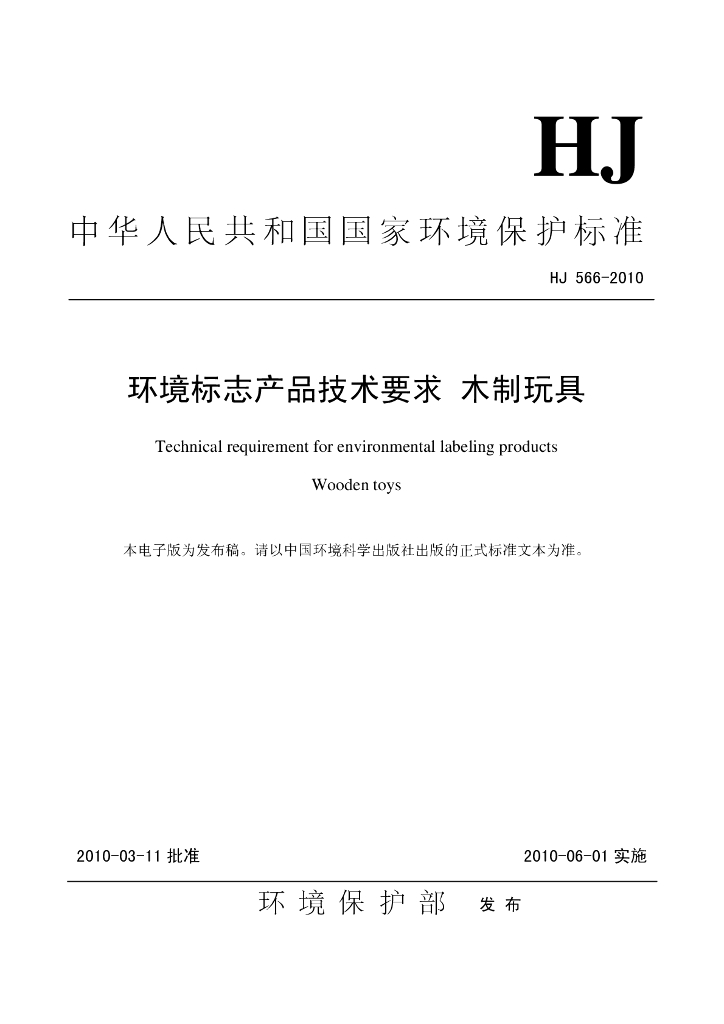 HJ 566-2010 环境标志产品技术要求 木制玩具