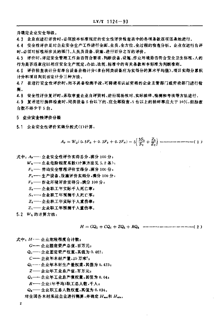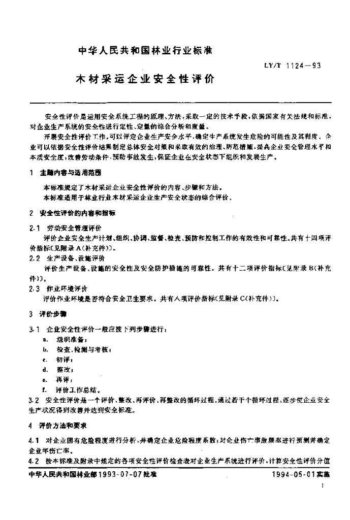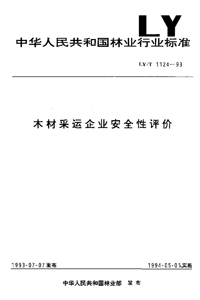 LY/T 1124-1993 木材采运企业安全性评价