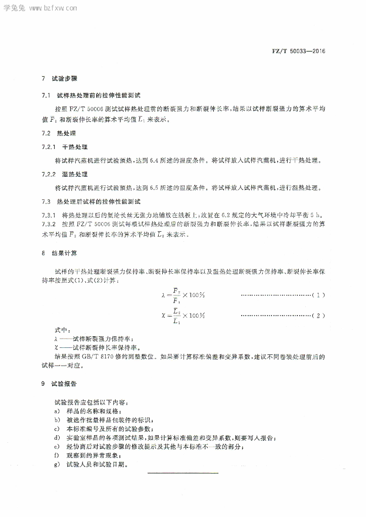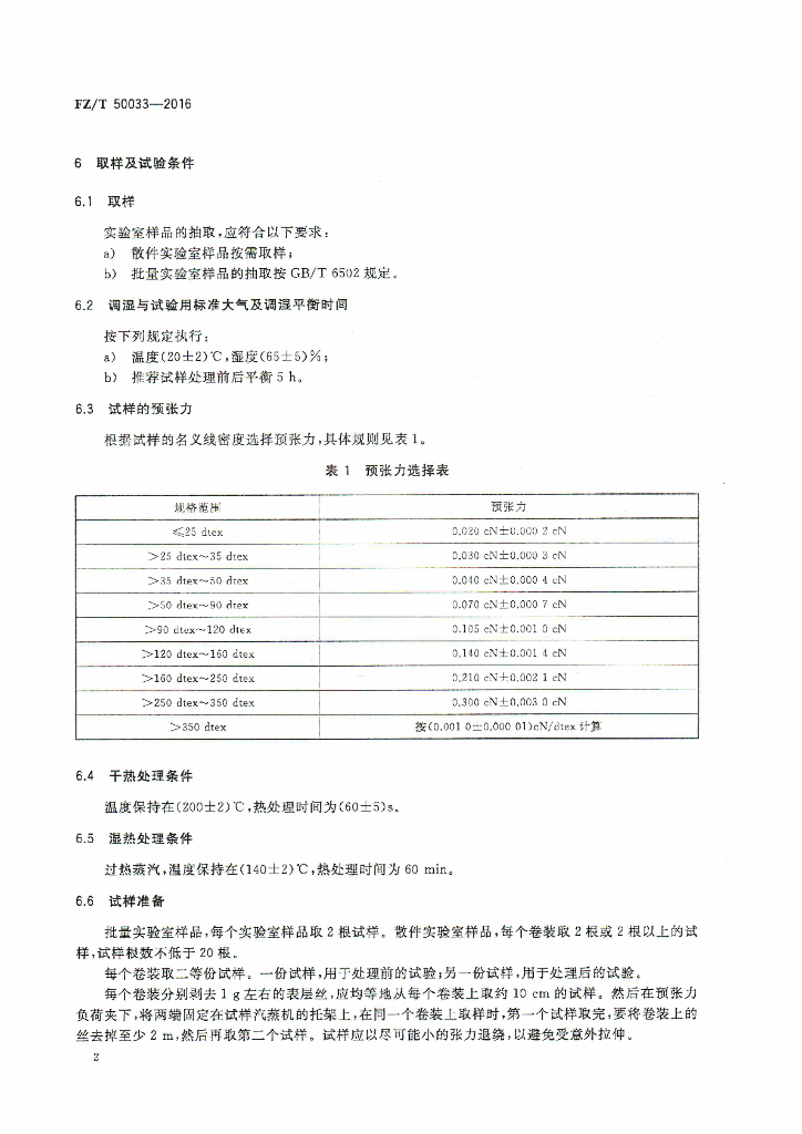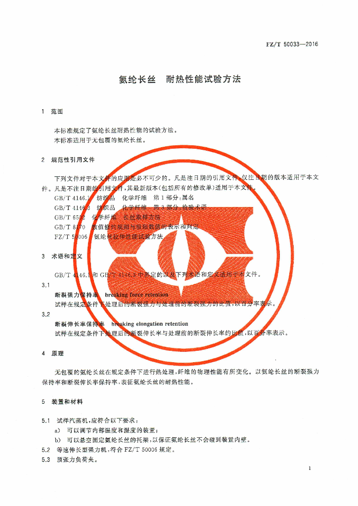 FZ/T 50033-2016 氨纶长丝 耐热性能试验方法