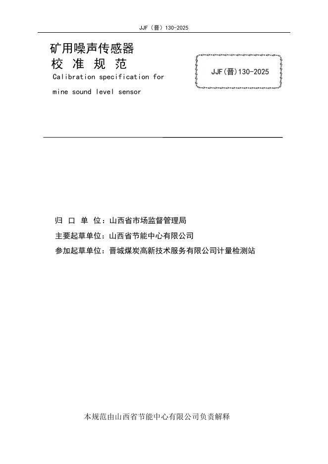 JJF(晋)130-2025 矿用噪声传感器校准规范
