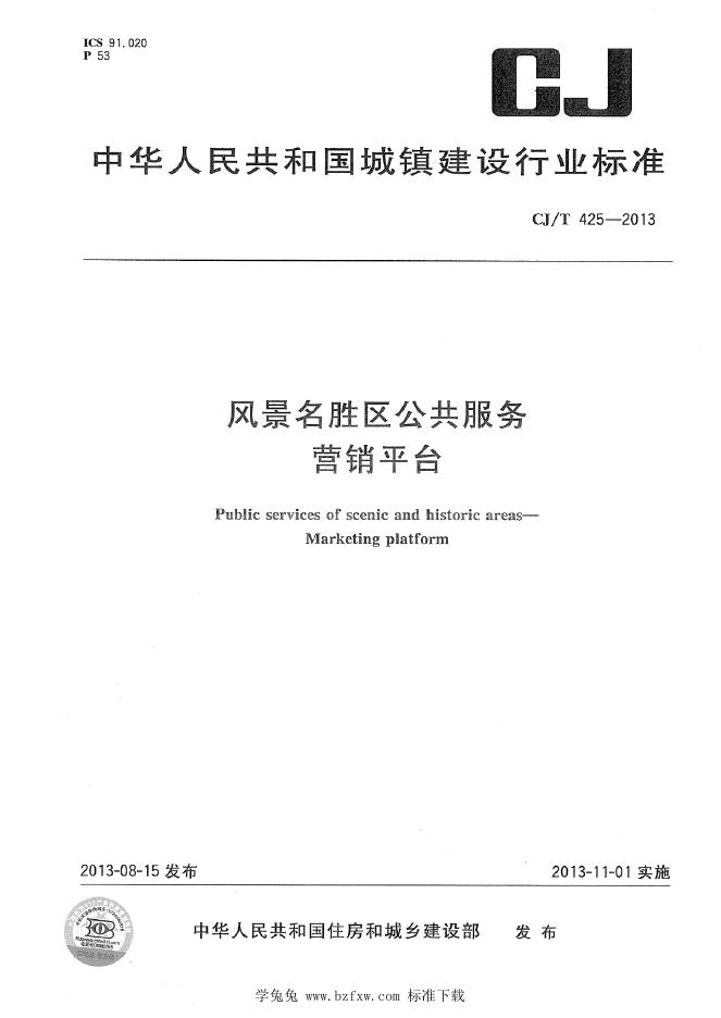 CJ/T 425-2013 风景名胜区公共服务 营销平台