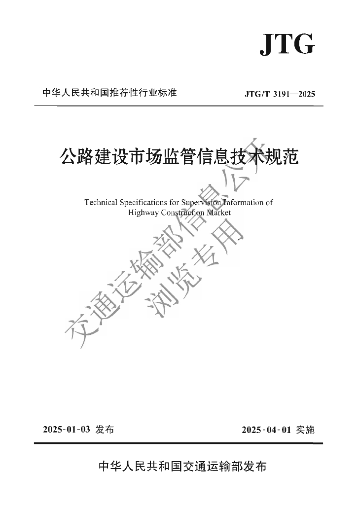 JTG/T 3191-2025 公路建设市场监管信息技术规范