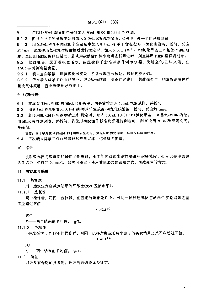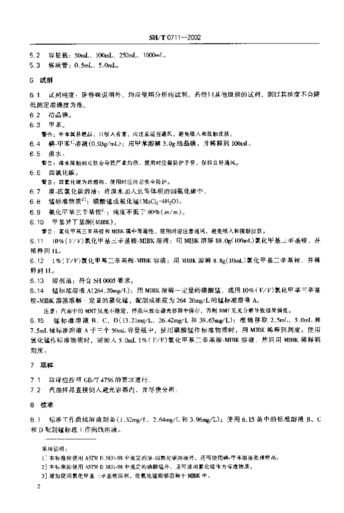 SH/T 0711-2002 汽油中锰含量测定法(原子吸收光谱法)