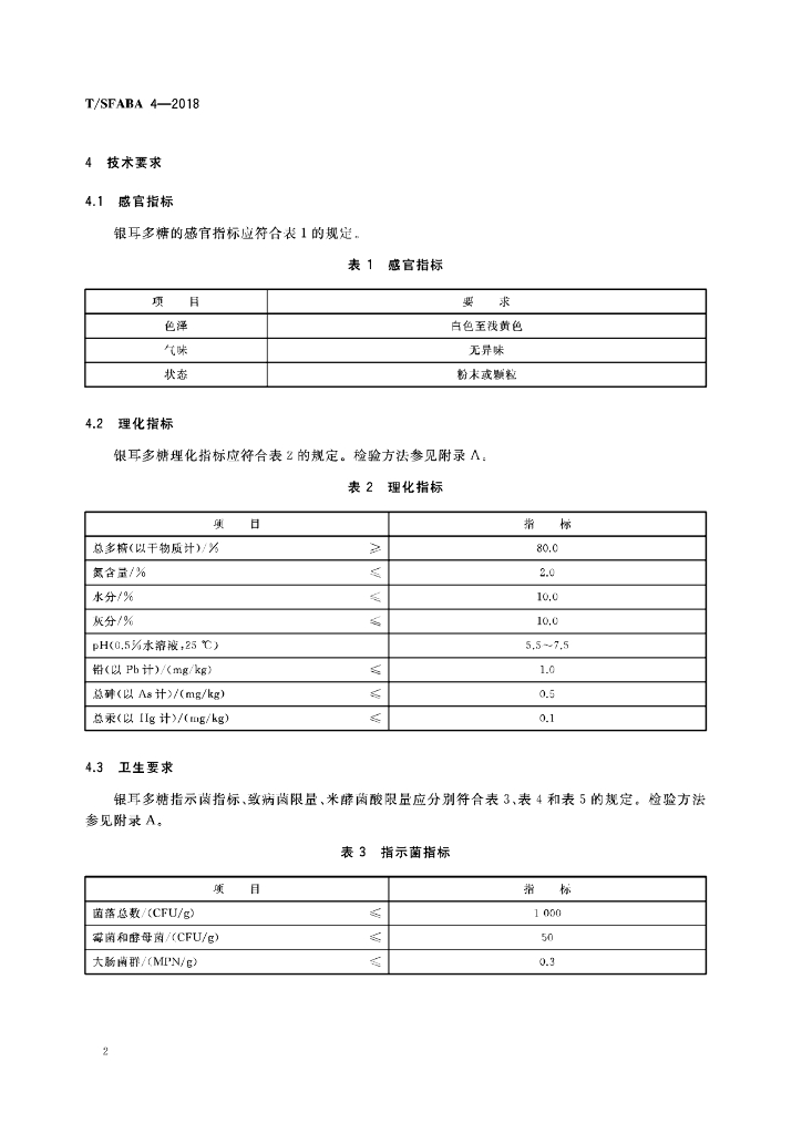 T/SFABA 4-2018 银耳多糖