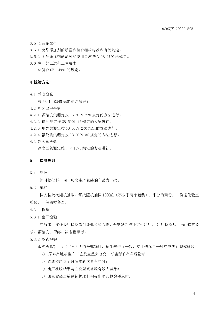 Q/QGJY 0003S-2021 酉幸酒(配制酒)