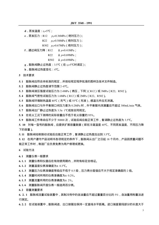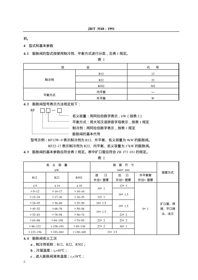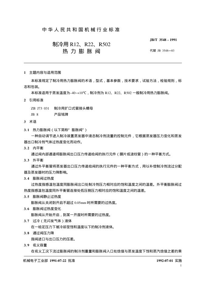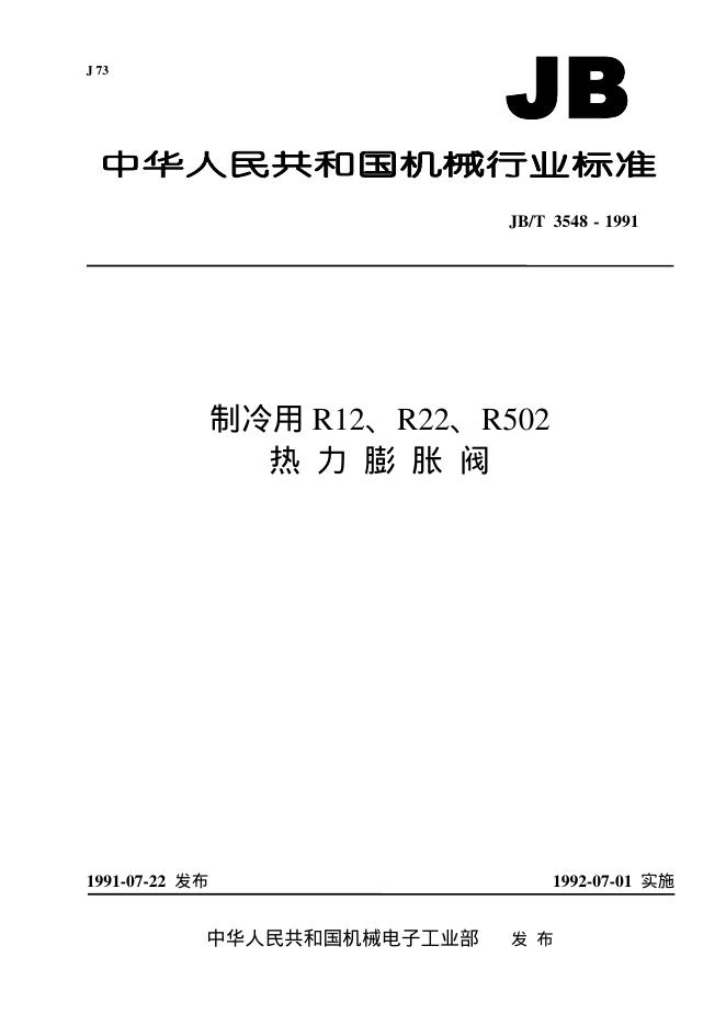 JB/T 3548-1991 制冷用R12、R22、R502热力膨胀阀