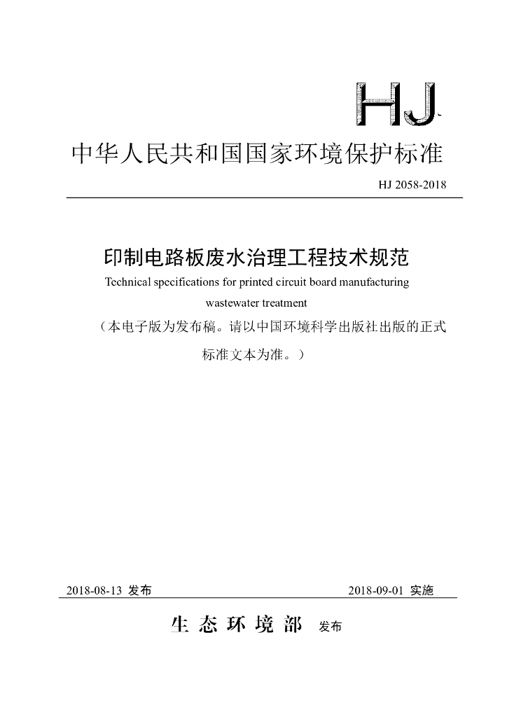 HJ 2058-2018 印制电路板废水治理工程技术规范