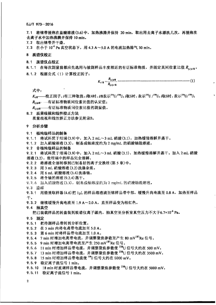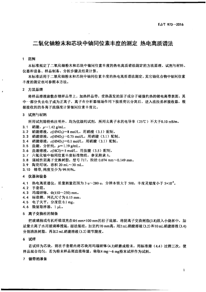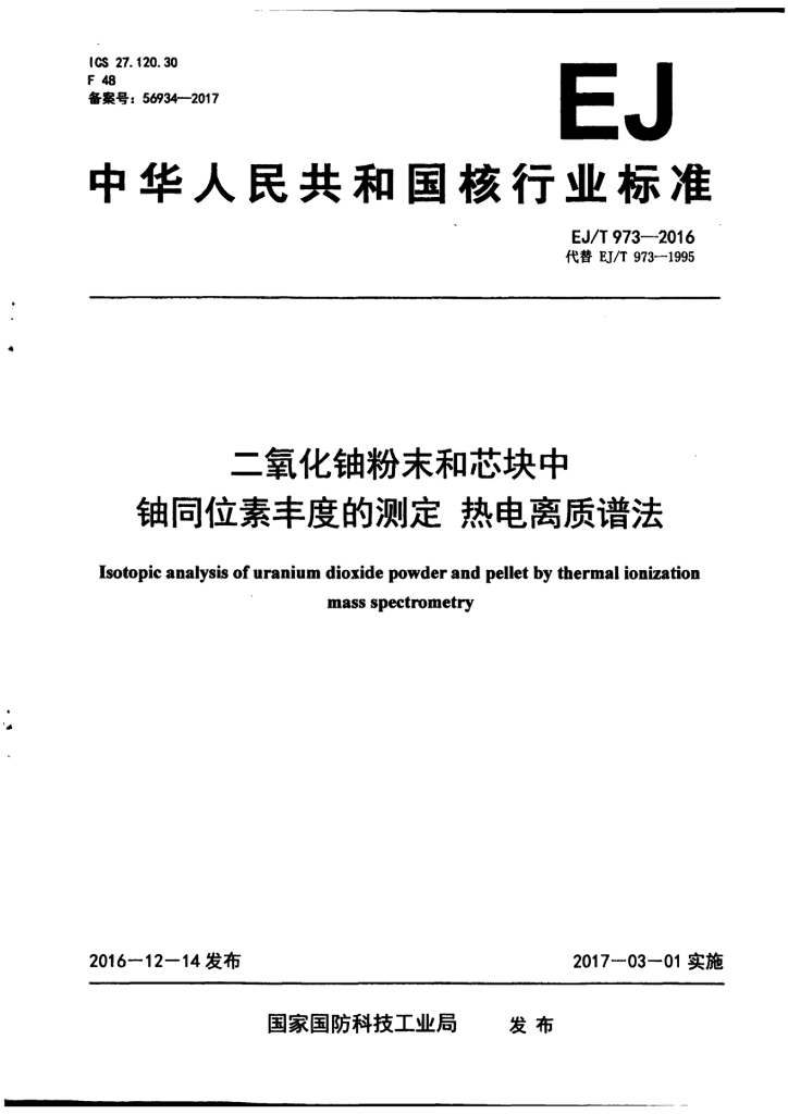 EJ/T 973-2016 二氧化铀粉末和芯块中铀同位素丰度的测定 热电离质谱法