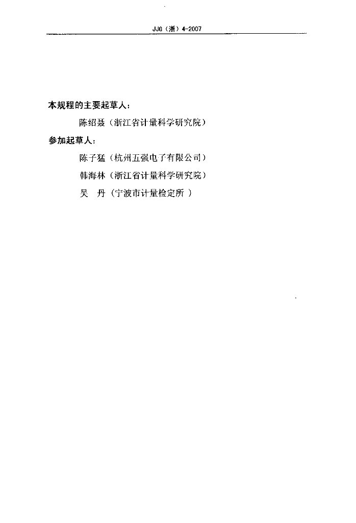 陈绍聂(浙江省计量科学研究院)、陈子猛(杭州五强电子有限公司)、韩海林(浙江省计量科学研究院)、吴丹(宁波市计量检定所)