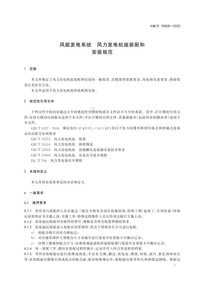 GB/T 19568-2025 风能发电系统 风力发电机组装配和安装规范