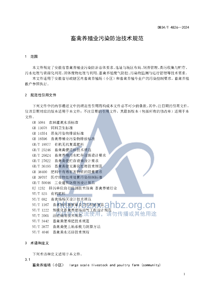 DB34/T 4826-2024 畜禽养殖业污染防治技术规范
