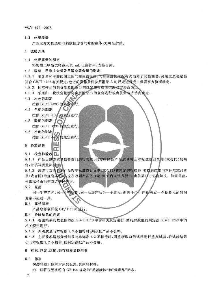 YS/T 672-2008 碳酸二甲酯