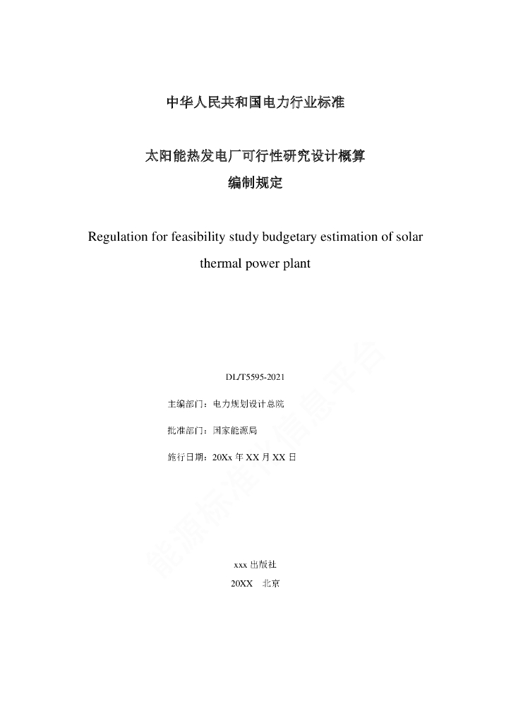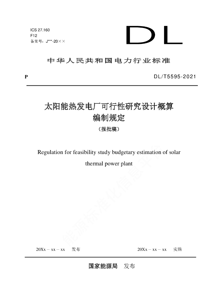 DL/T 5595-2021 太阳能热发电厂可行性研究设计概算编制规定