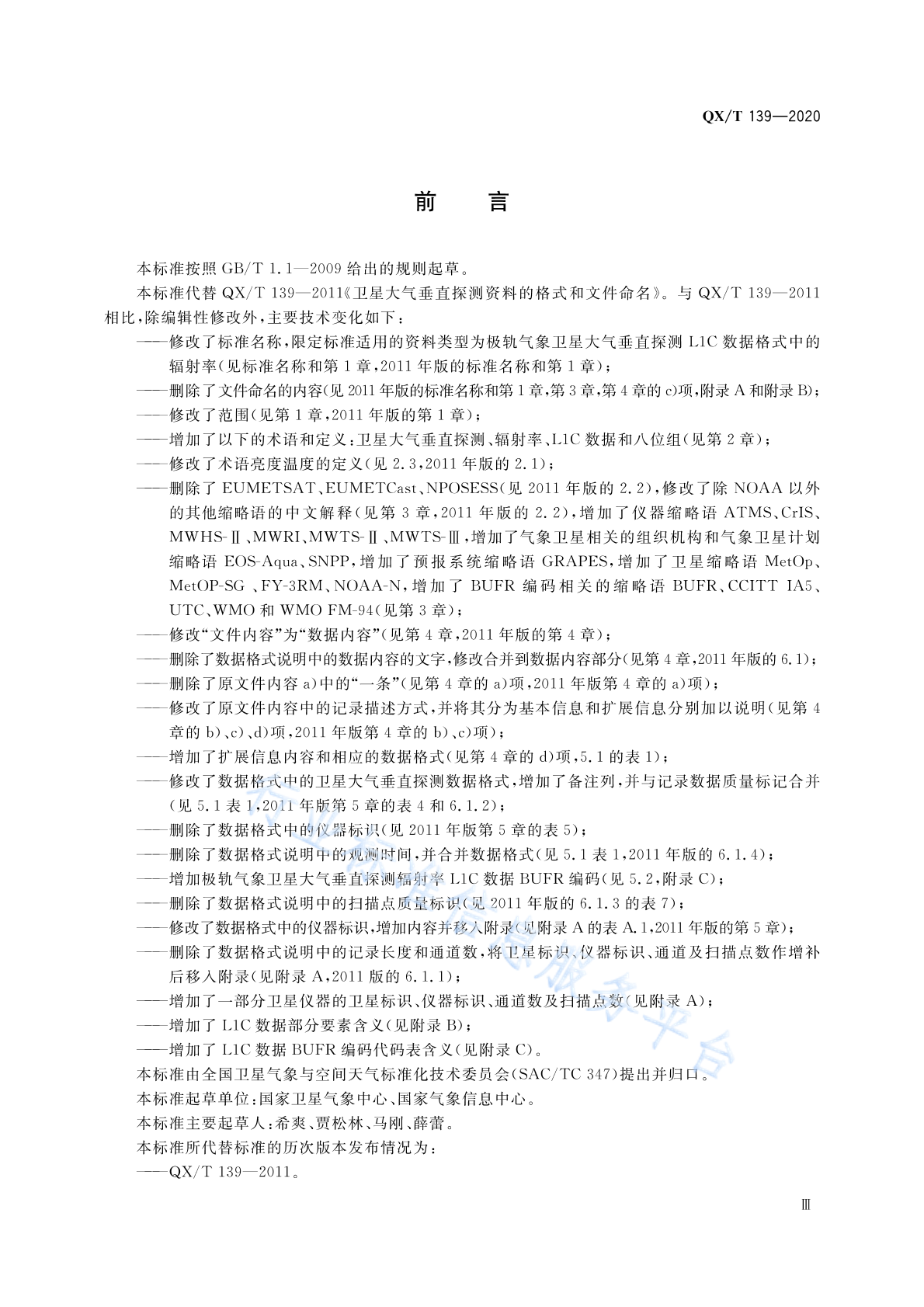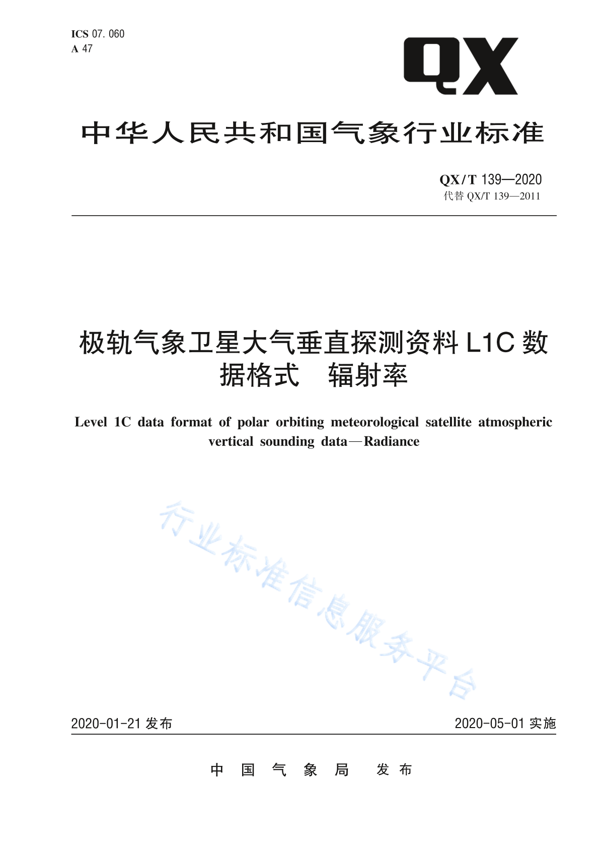 QX/T 139-2020 极轨气象卫星大气垂直探测资料L1C数据格式 辐射率