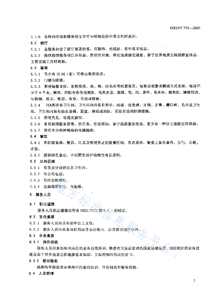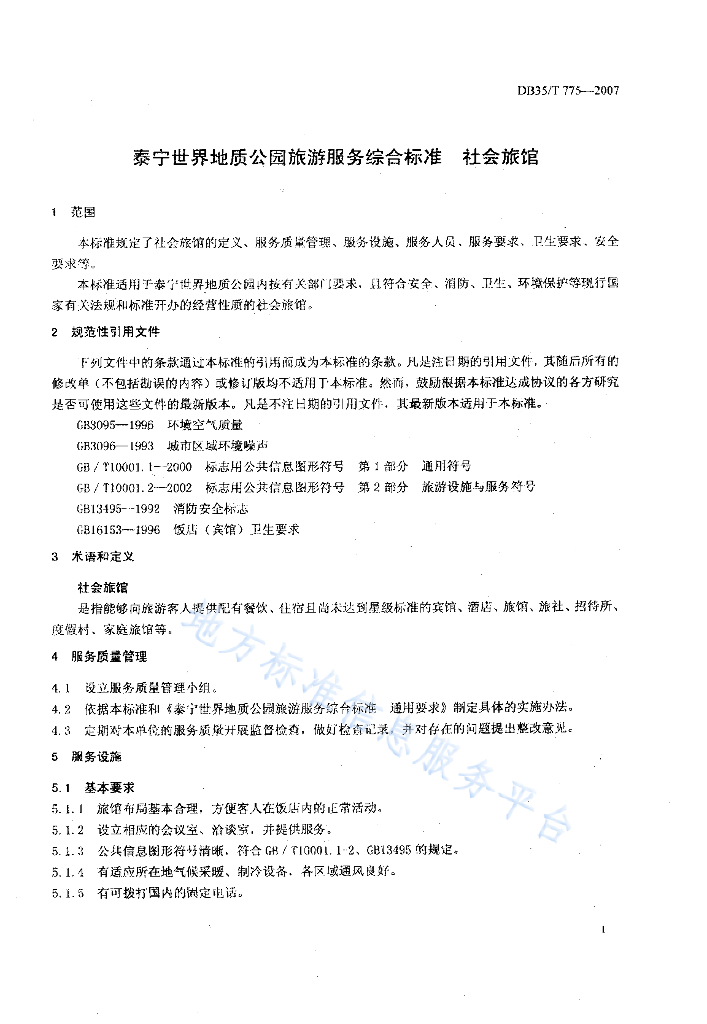 DB35/T 775-2007 泰宁世界地质公园旅游服务综合标准 社会旅馆