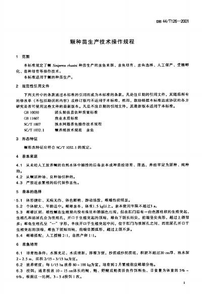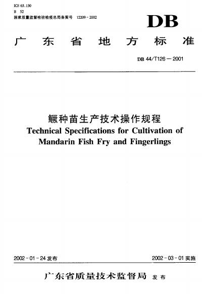 DB44/T 126-2001 鳜种苗生产技术操作规程