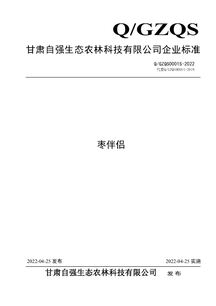 Q/GZQS 0001S-2022 枣伴侣