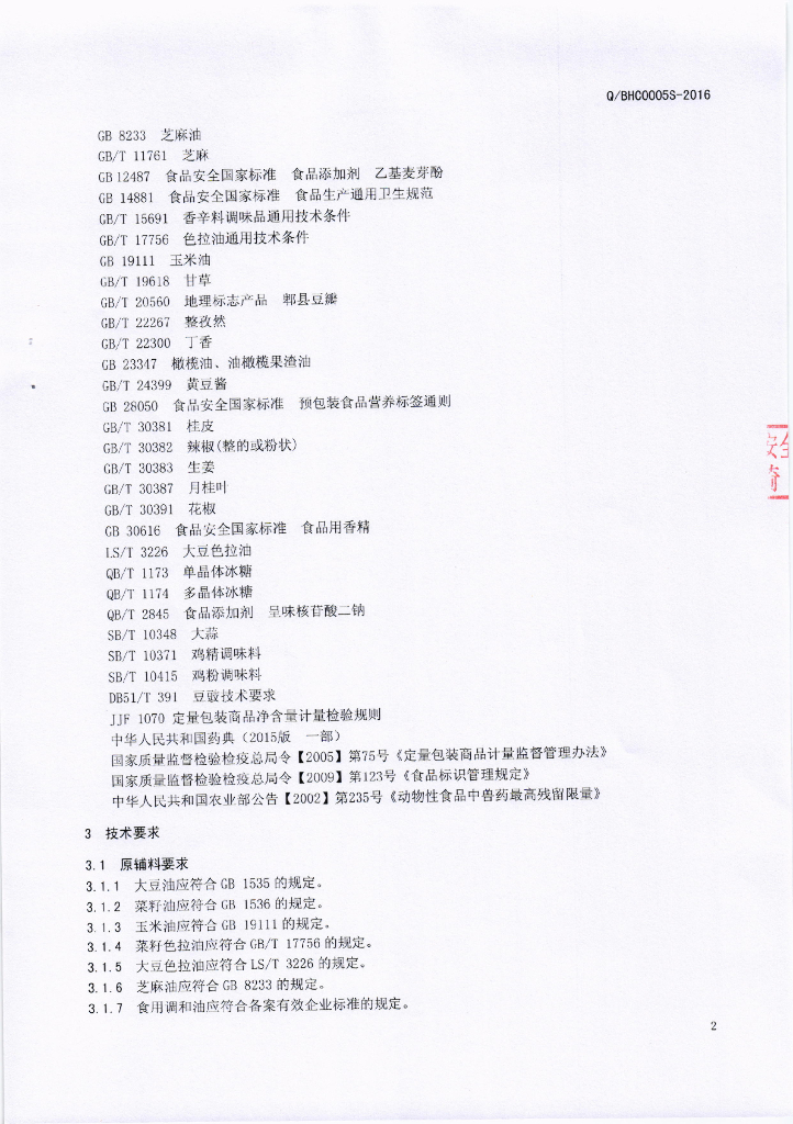 Q/BHC 0005S-2016 芭夯餐饮管理有限公司 食用调味油