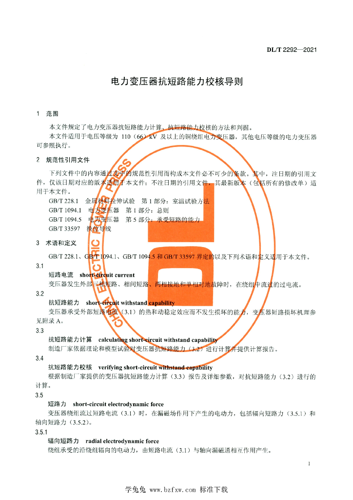 DL/T 2292-2021 电力变压器抗短路能力校核导则