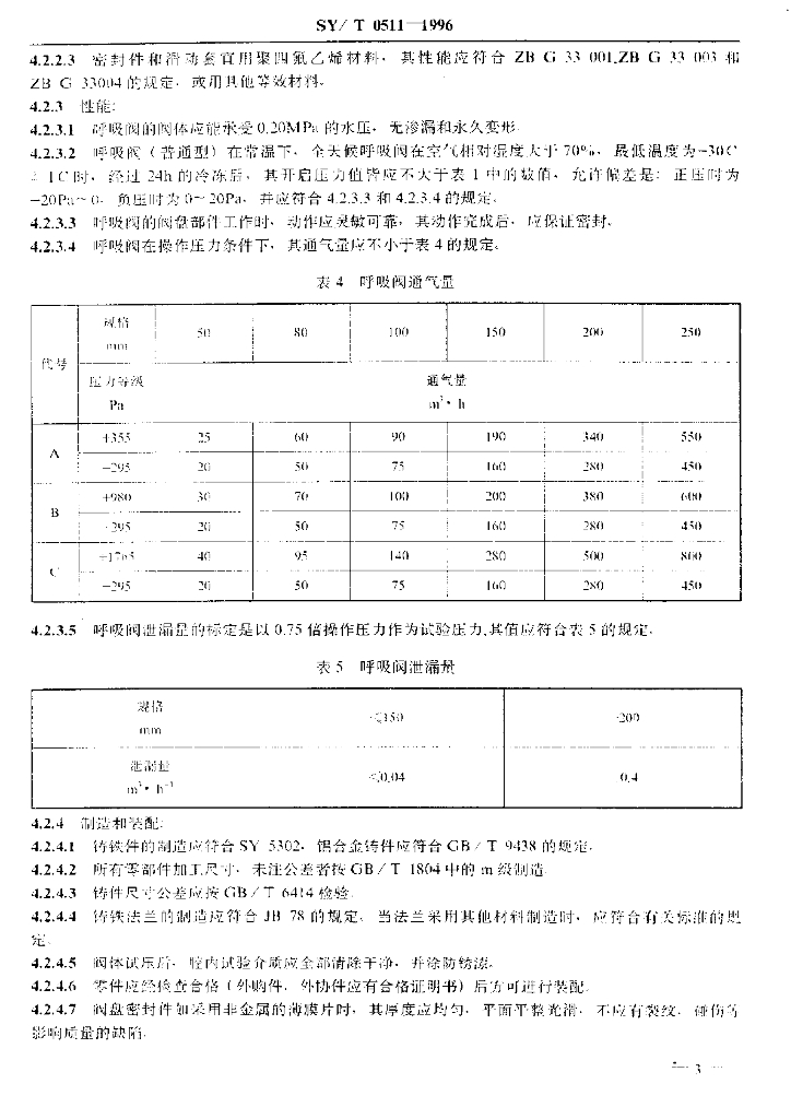 SY/T 0511-1996 石油储罐呼吸阀