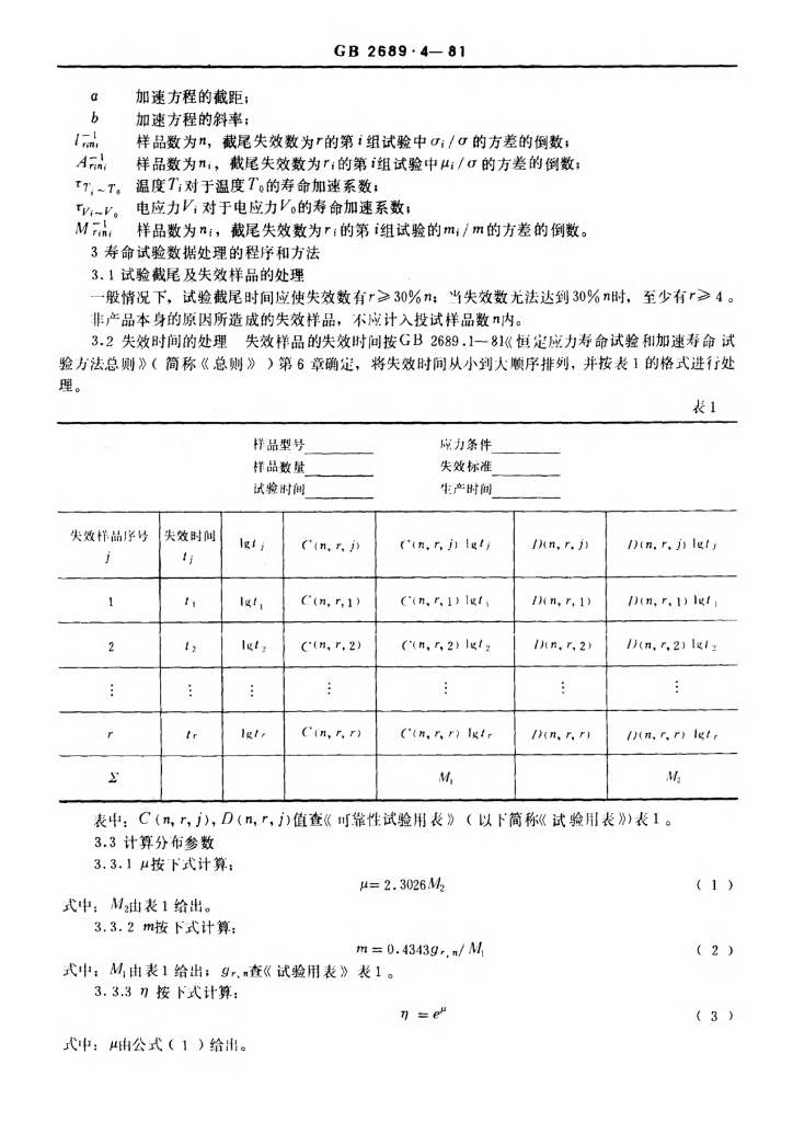 GB/T 2689.4-1981 寿命试验和加速寿命试验的最好线性无偏估计法(用于威布尔分布)