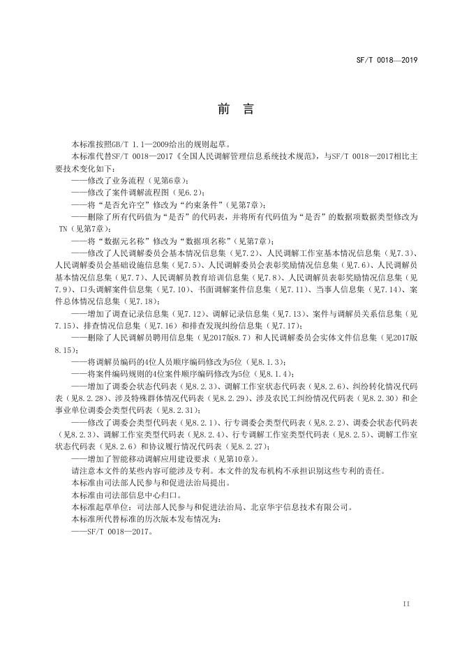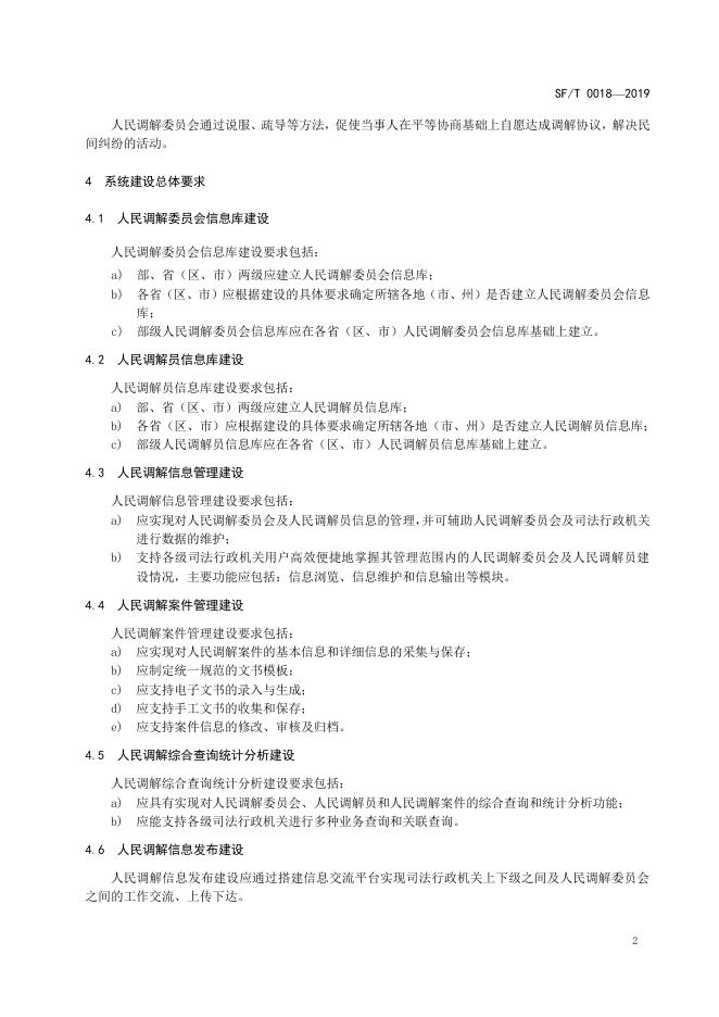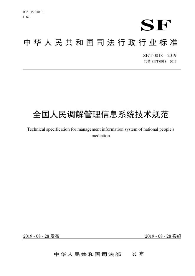 SF/T 0018-2019 全国人民调解管理信息系统技术规范