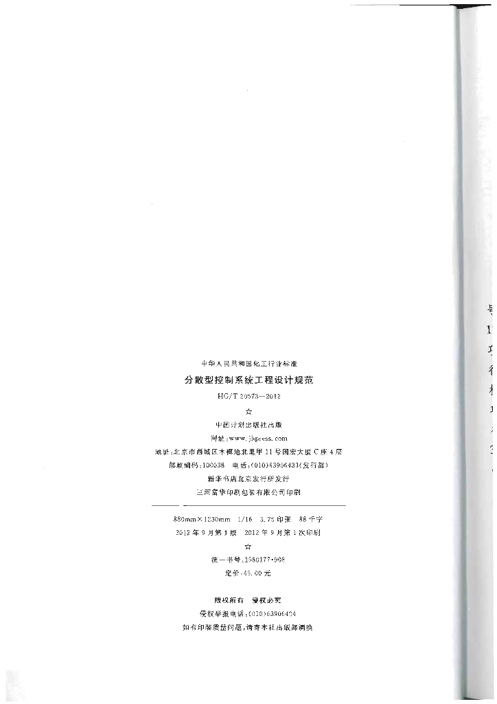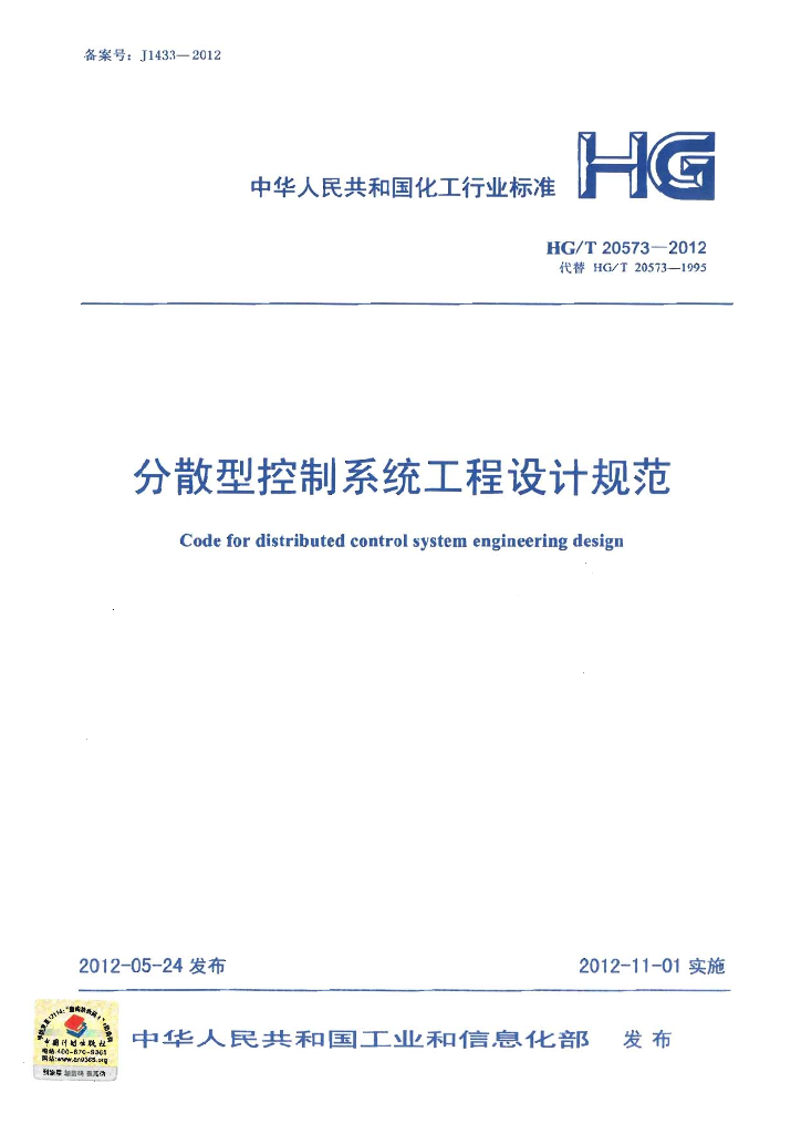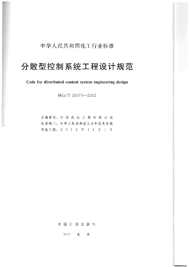 HG/T 20573-2012 分散型控制系统工程设计规范