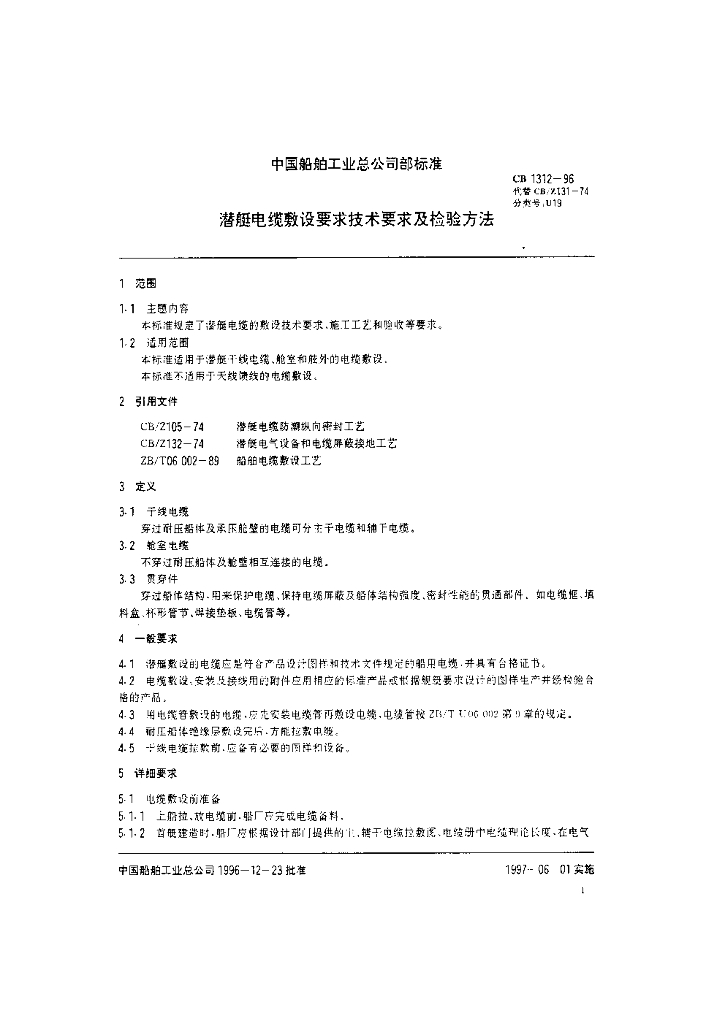 CB 1312-1996 潜艇电缆敷设要求